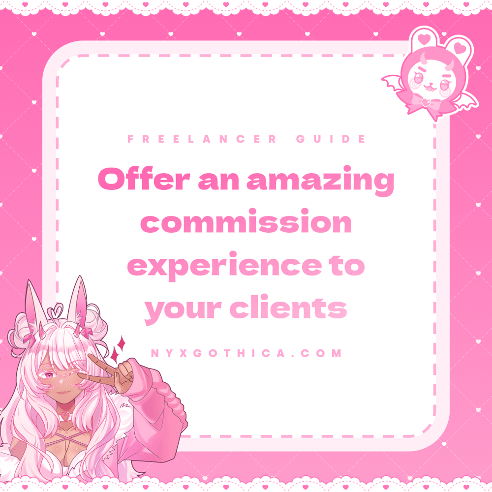 2. Communicate. If you struggle with updating clients in a timely manner, set up a schedule for yourself where you send updates weekly or monthly, depending on how long the delivery takes. Never let the client ask you first for an update, especially if you KNOW too much time has passed without an update, as that reflects badly on you. You need to be VERY proactive when it comes to letting them know what's going on. This is incredibly important. Clients are not just paying you for a finished result, the experience they have with the service you provide is just as important. Asking questions to double check, sending timely updates, and making sure your client is happy with how the process is going is vital. If you don’t know how to talk to clients or how to handle customer experience, polish those communication skills BEFORE you even think about opening commissions. Don’t play around with people’s money and time.