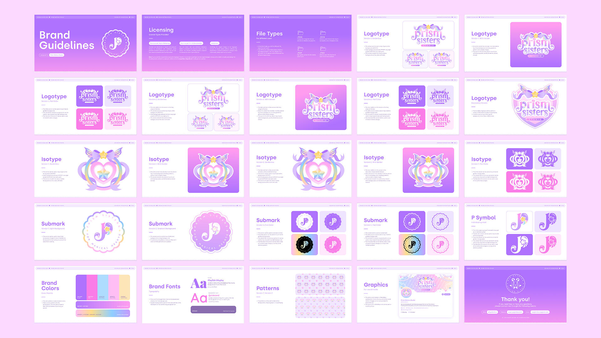 ♡ Brand Guidelines showcasing usage rules, licensing terms, and mockups.